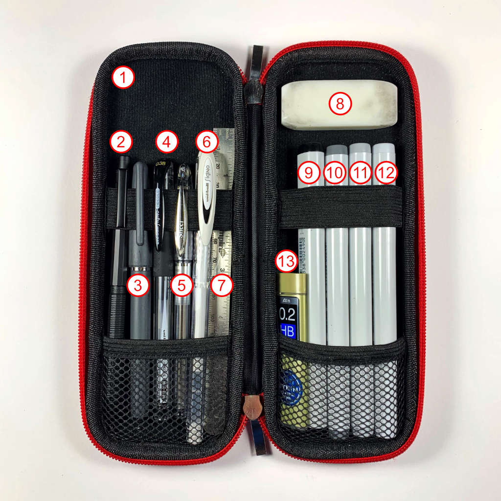 NOT PICTURED: I recently added my 3D-printed MJS.ART Drawing Stencil Kit #1 to my #EDC, but haven't had a chance to update the pic.